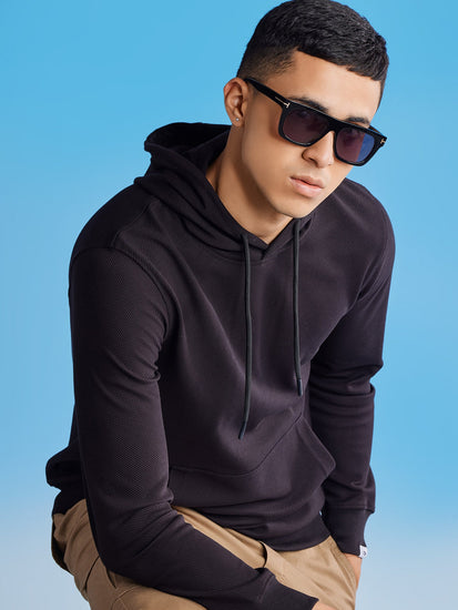 Black Ottoman Crew Neck Hooded Sweatshirt