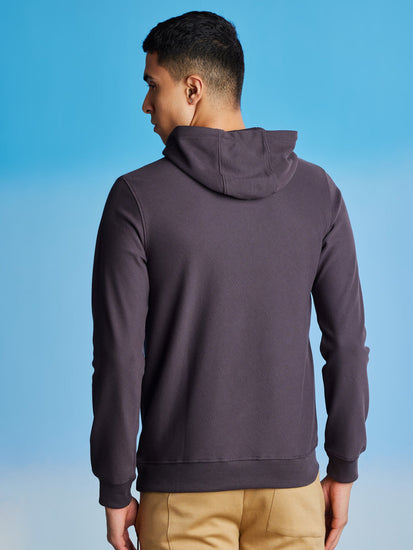 Ritesh Nagdive Dark Grey Ottoman Crew Neck Hooded Sweatshirt
