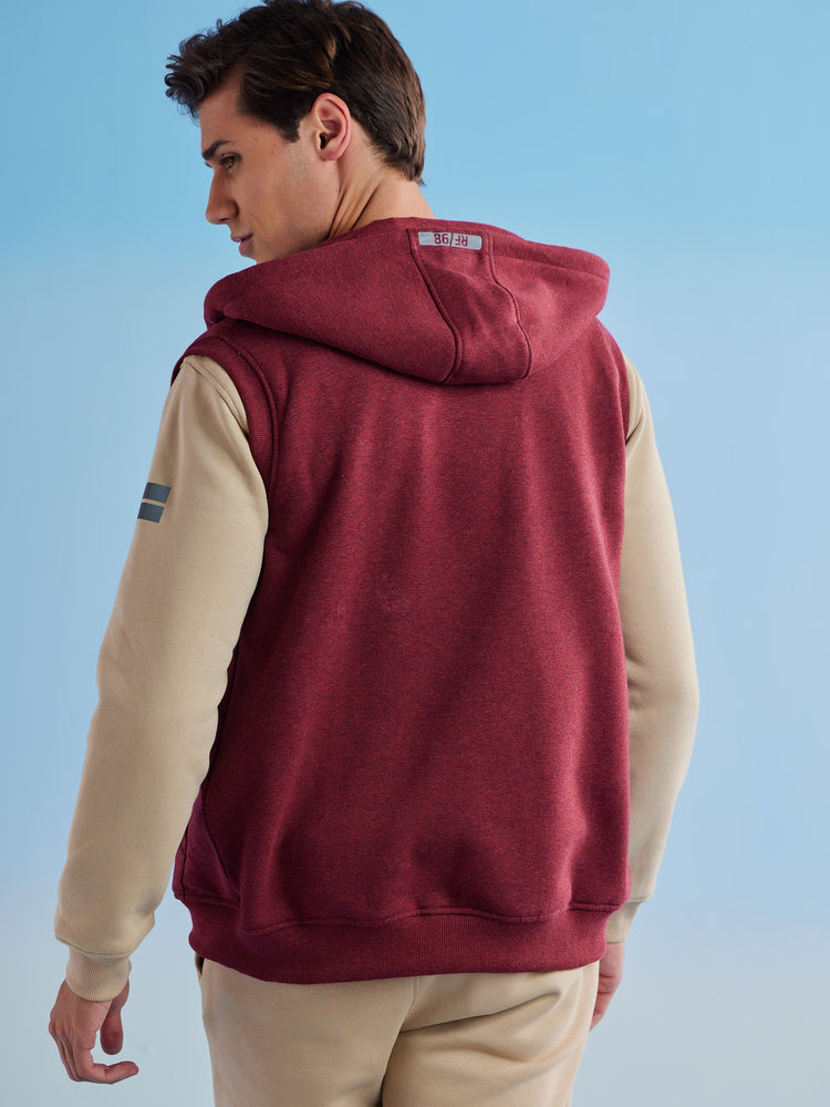 Abhigna . Red Fleece Sleeve Less Hooded Sweatshirt